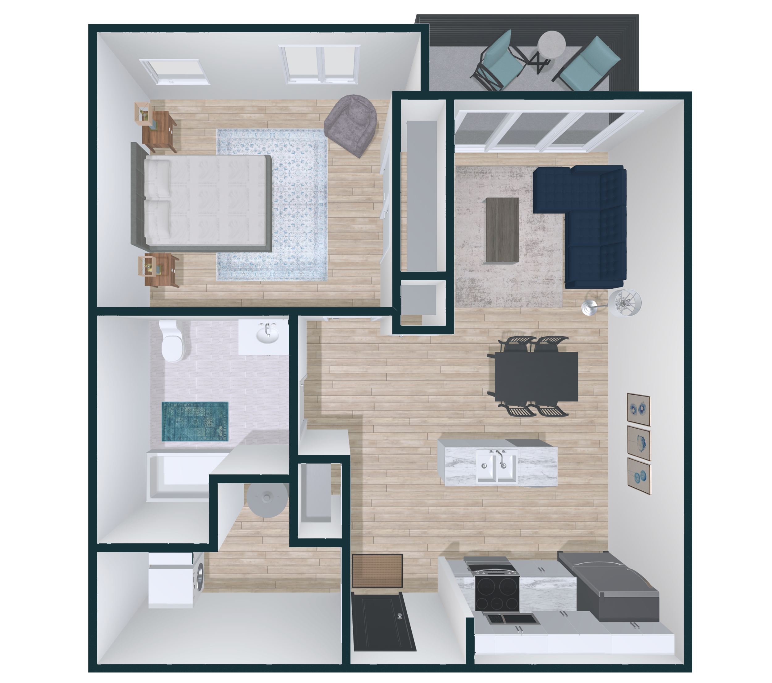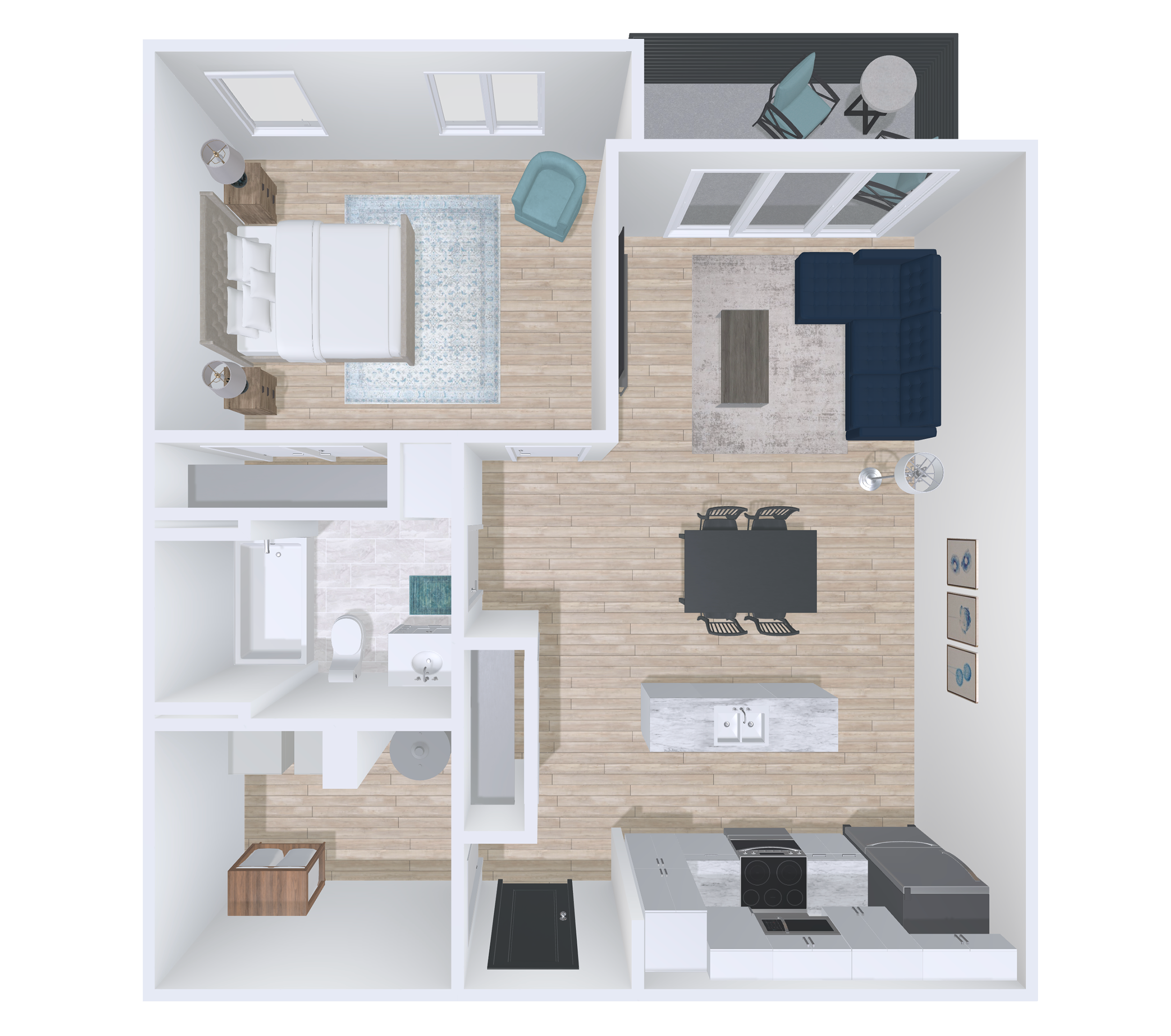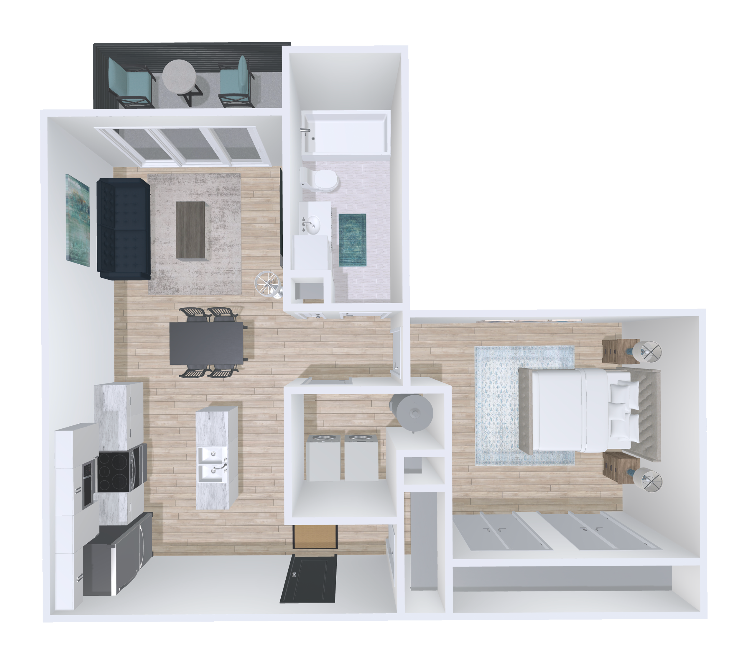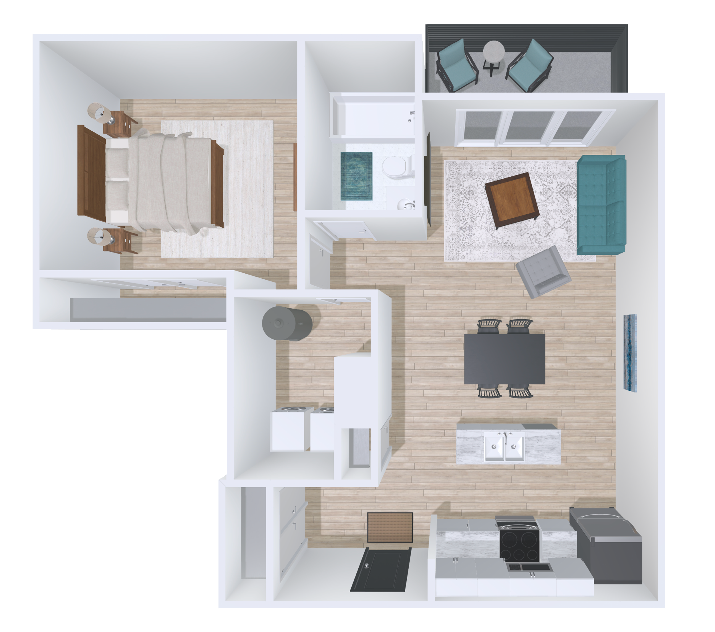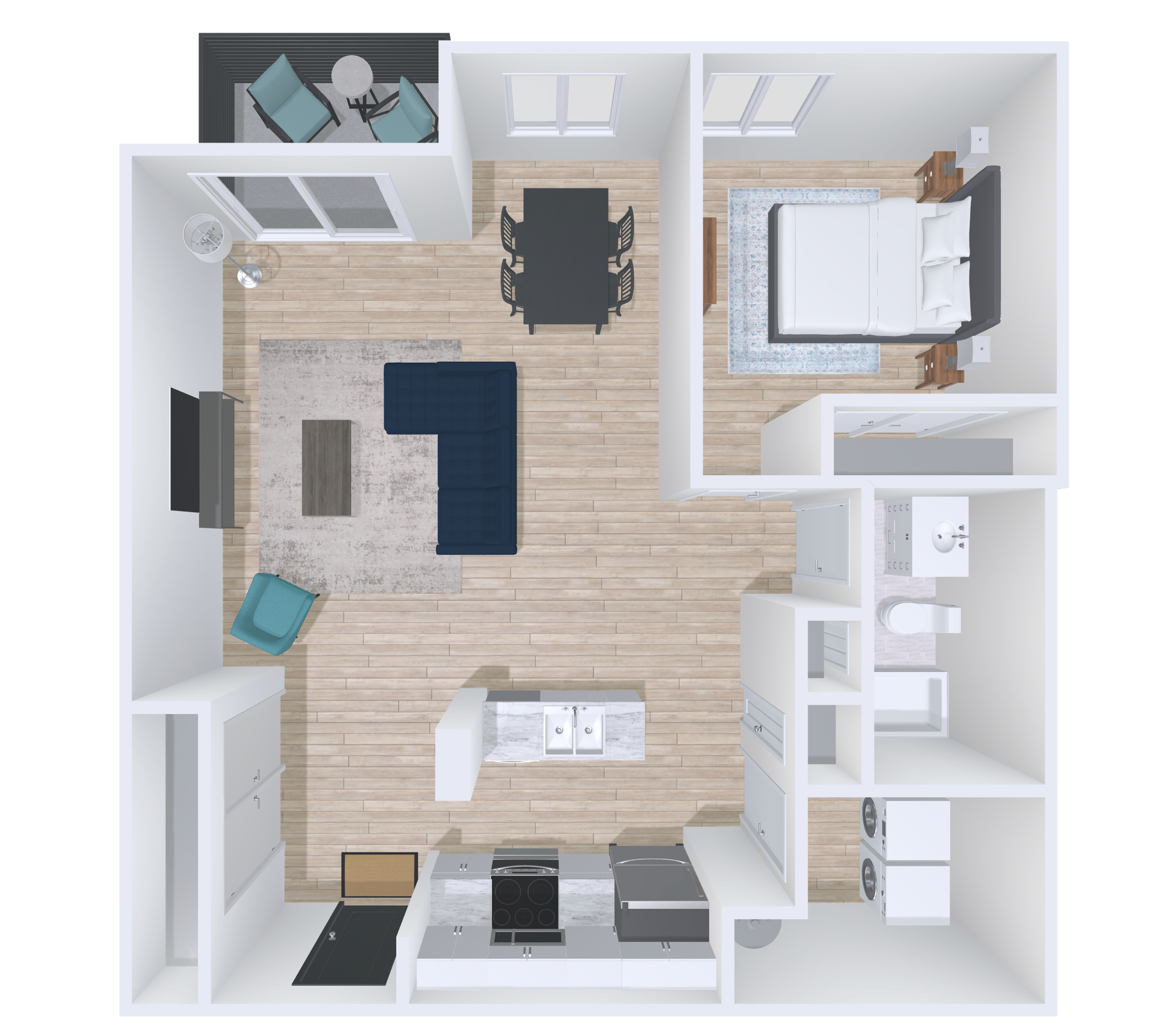Bright 1 Bed 1 Bath with open-concept living, large windows, and a private balcony with panoramic views. Features in-suite laundry, walk-in closets, AC/heat pumps, secure access, included 2.5 Gbps internet, storage units, select pet-friendly options and more.