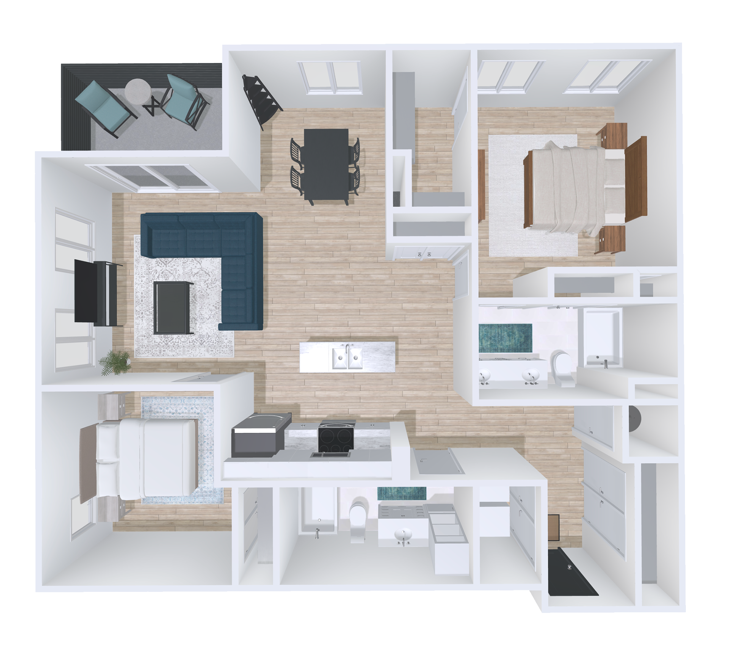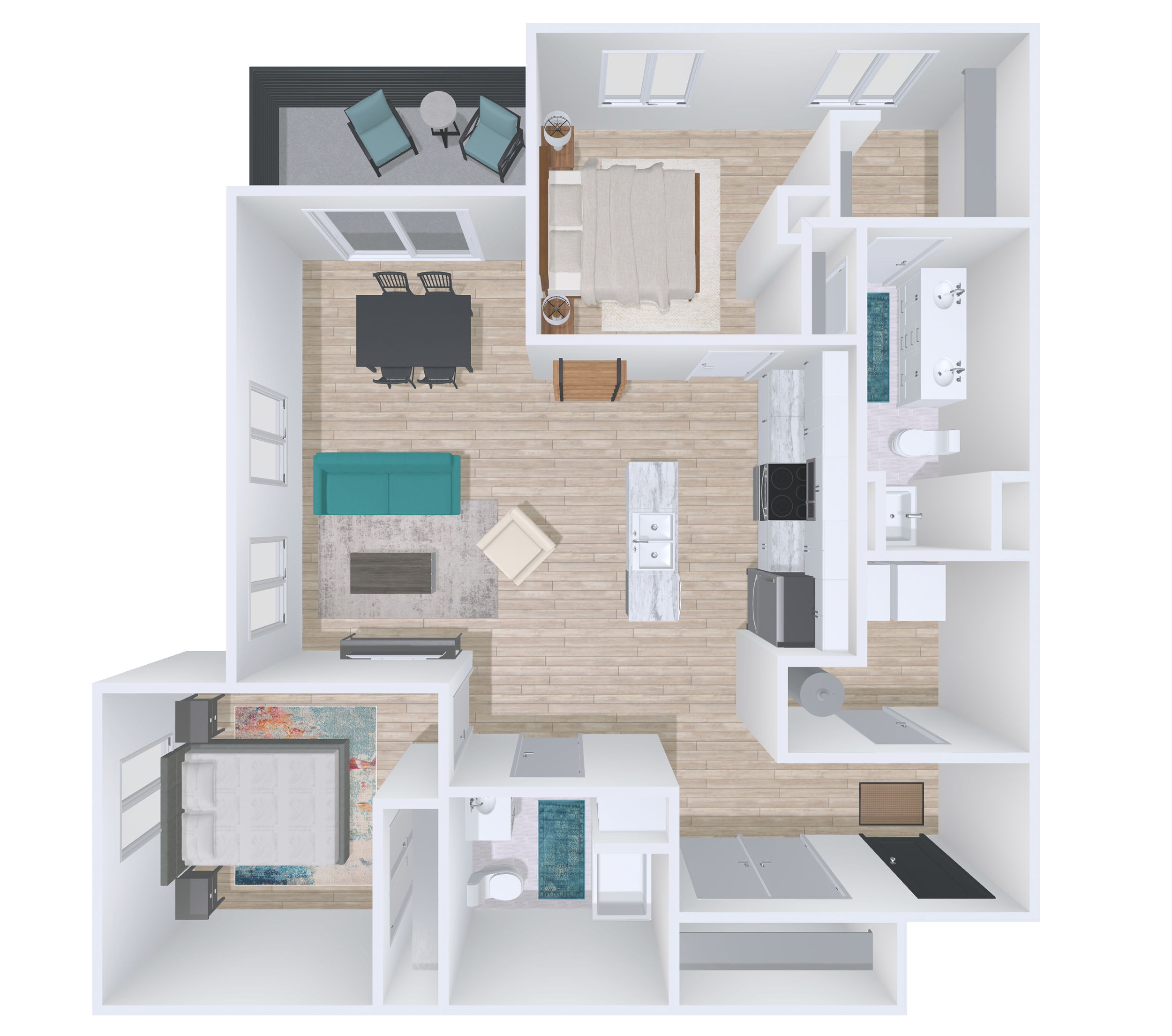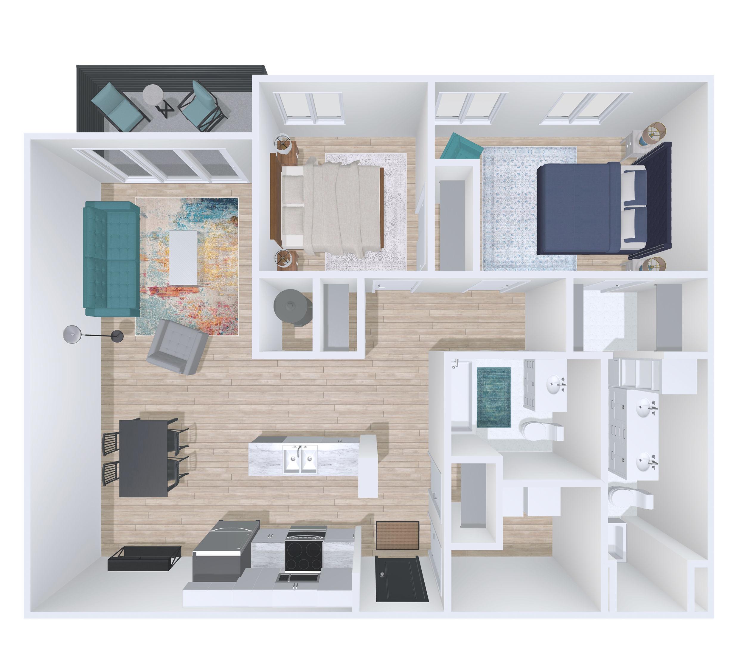 Divided bedrooms with walk-in closets in this 2 Bed 2 Bath. Bright, open-concept living with excellent entry storage. Features in-suite laundry, AC/heat pumps, large windows, secure access, included 2.5Gbps internet, pet-friendly units and more