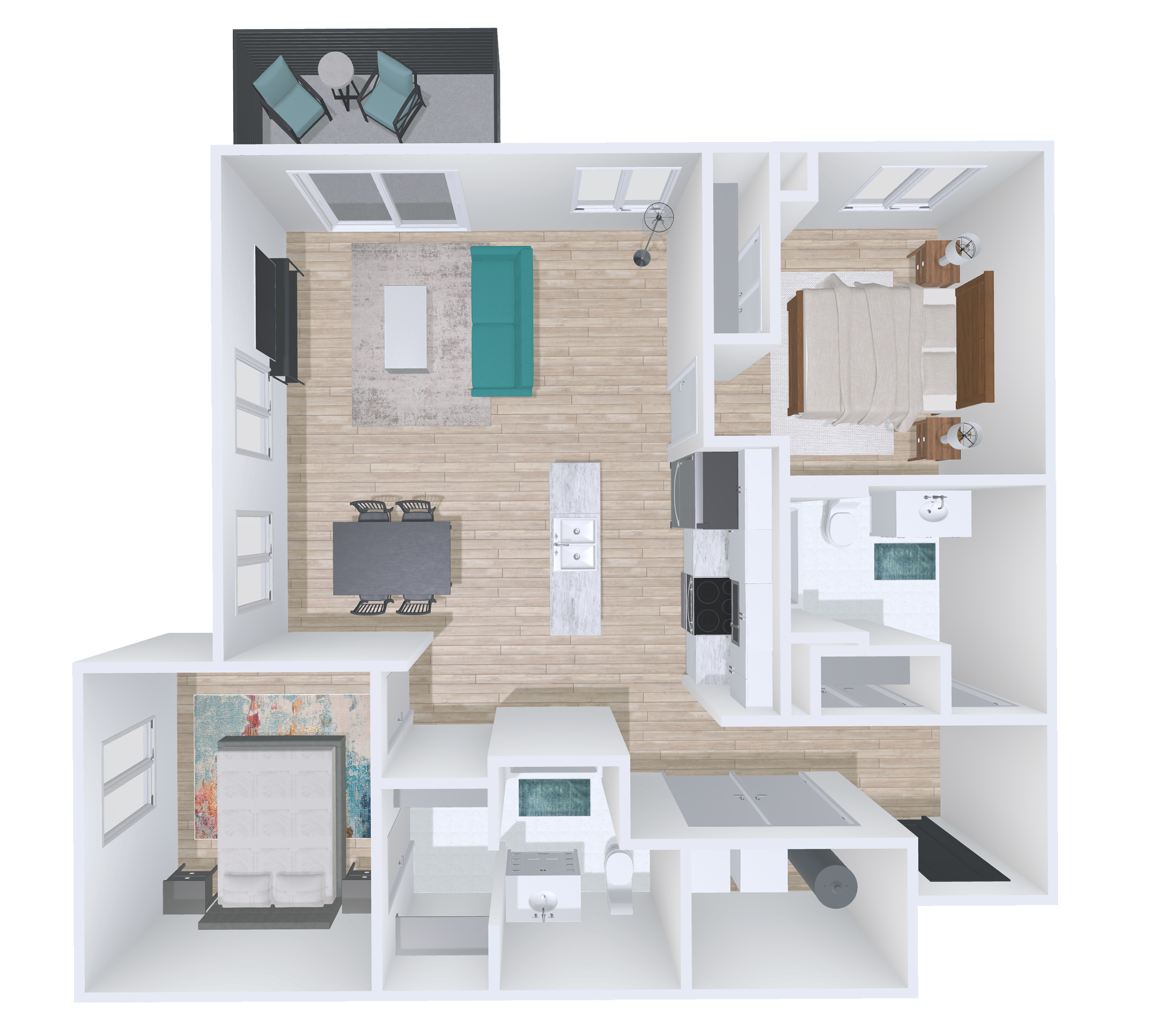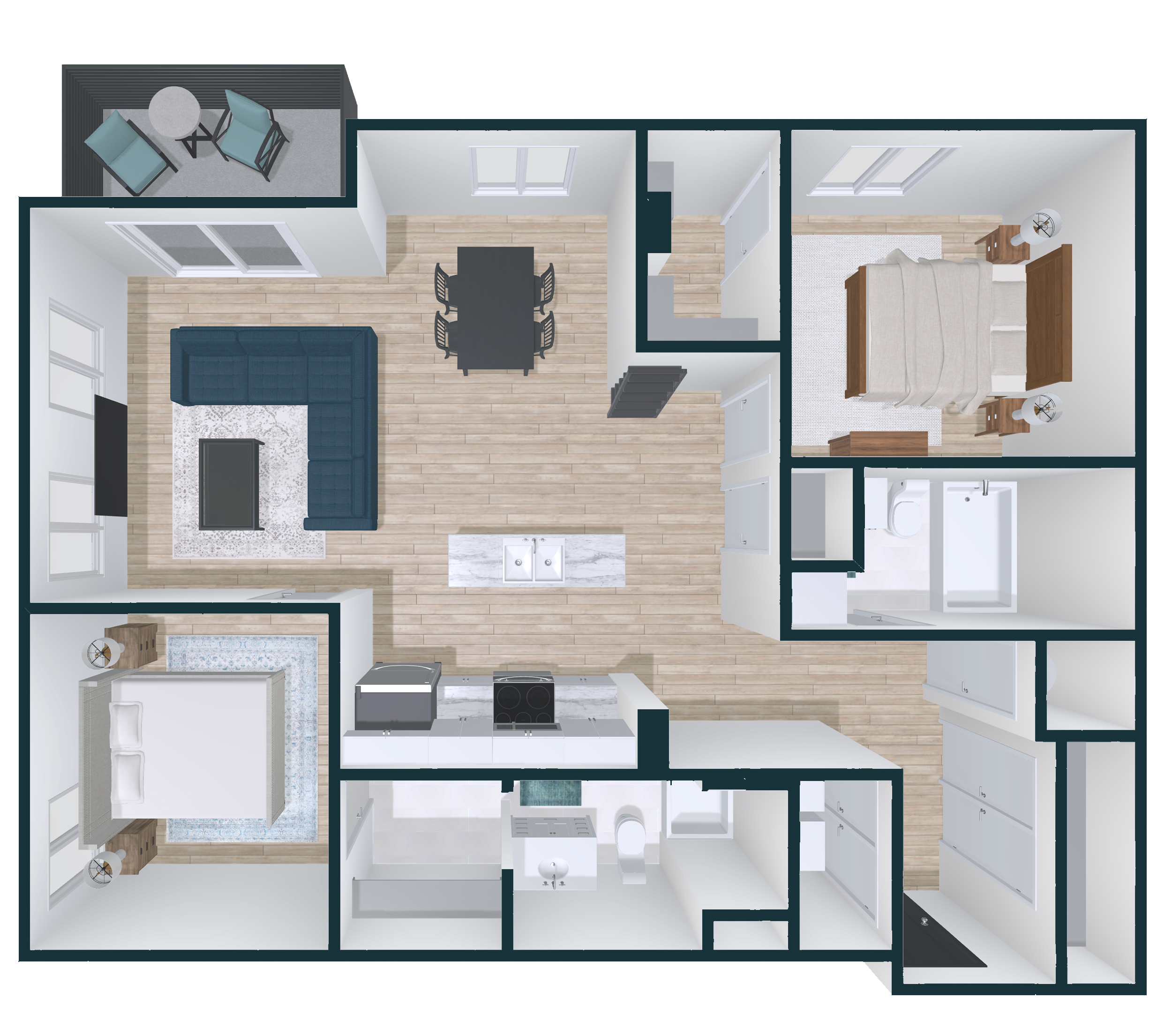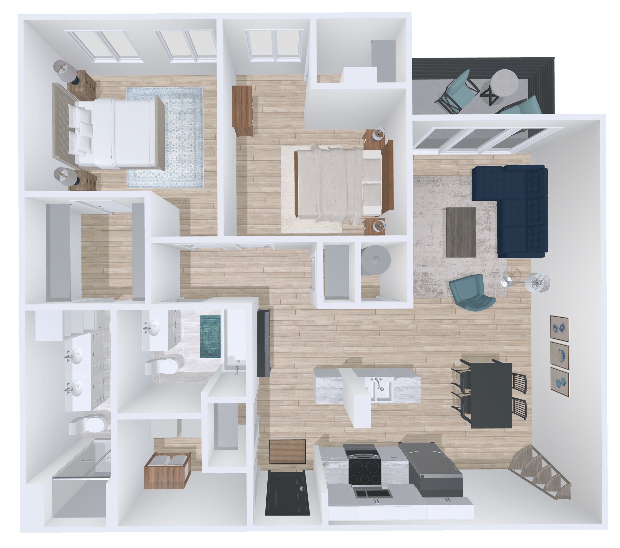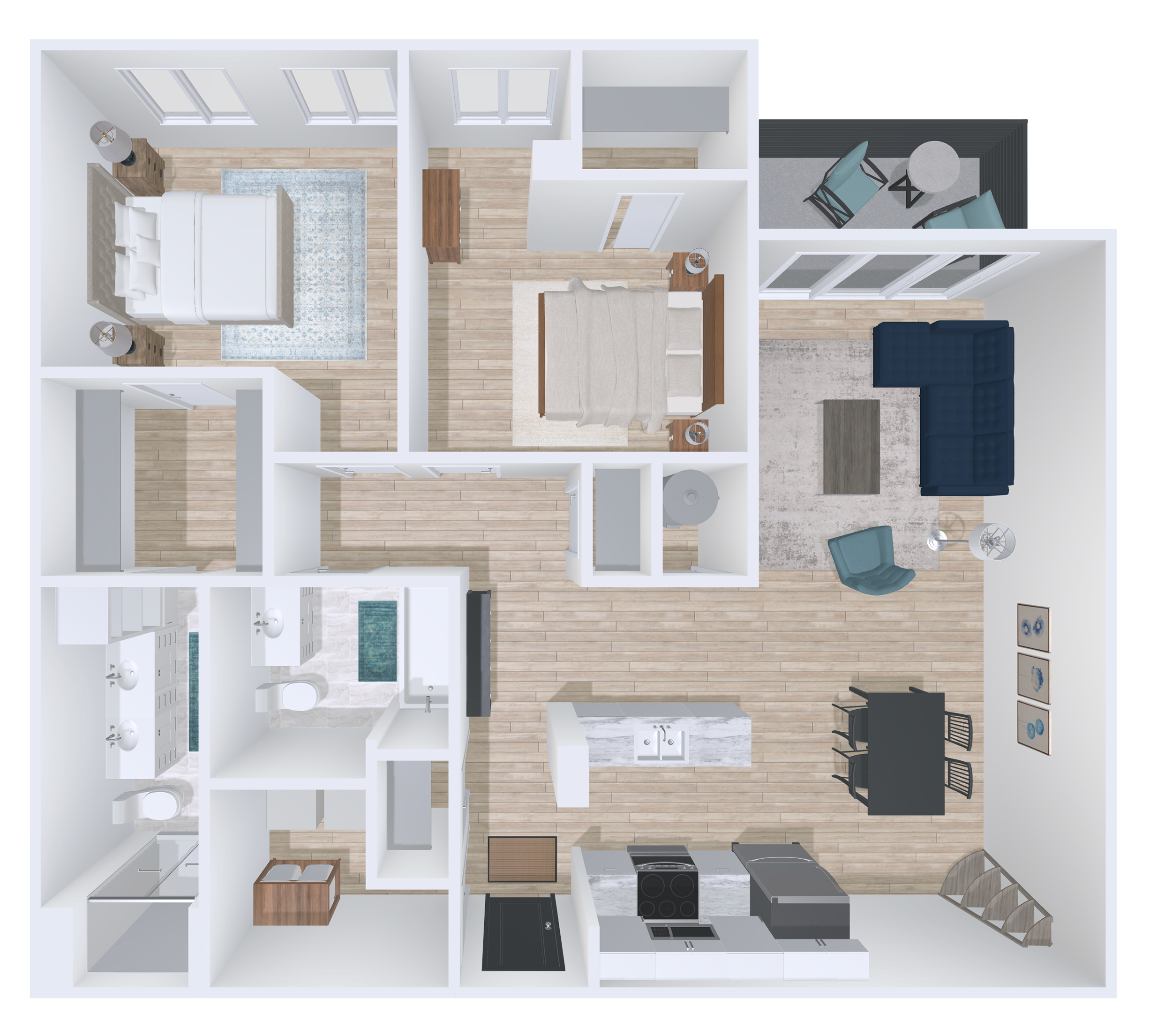 Divided bedrooms with walk-in closets in this 2 Bed 2 Bath. Bright, open-concept living with excellent entry storage. Features in-suite laundry, AC/heat pumps, large windows, secure access, included 2.5Gbps internet, pet-friendly units and more